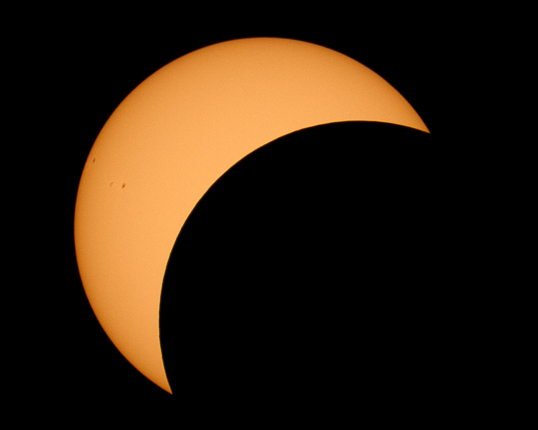 The May 2012 annular eclipse, while not as spectacular as a total eclipse, was interesting in its own way, so I have included a few pictures of it. This eclipse was seen through clouds, which added some drama to the images.